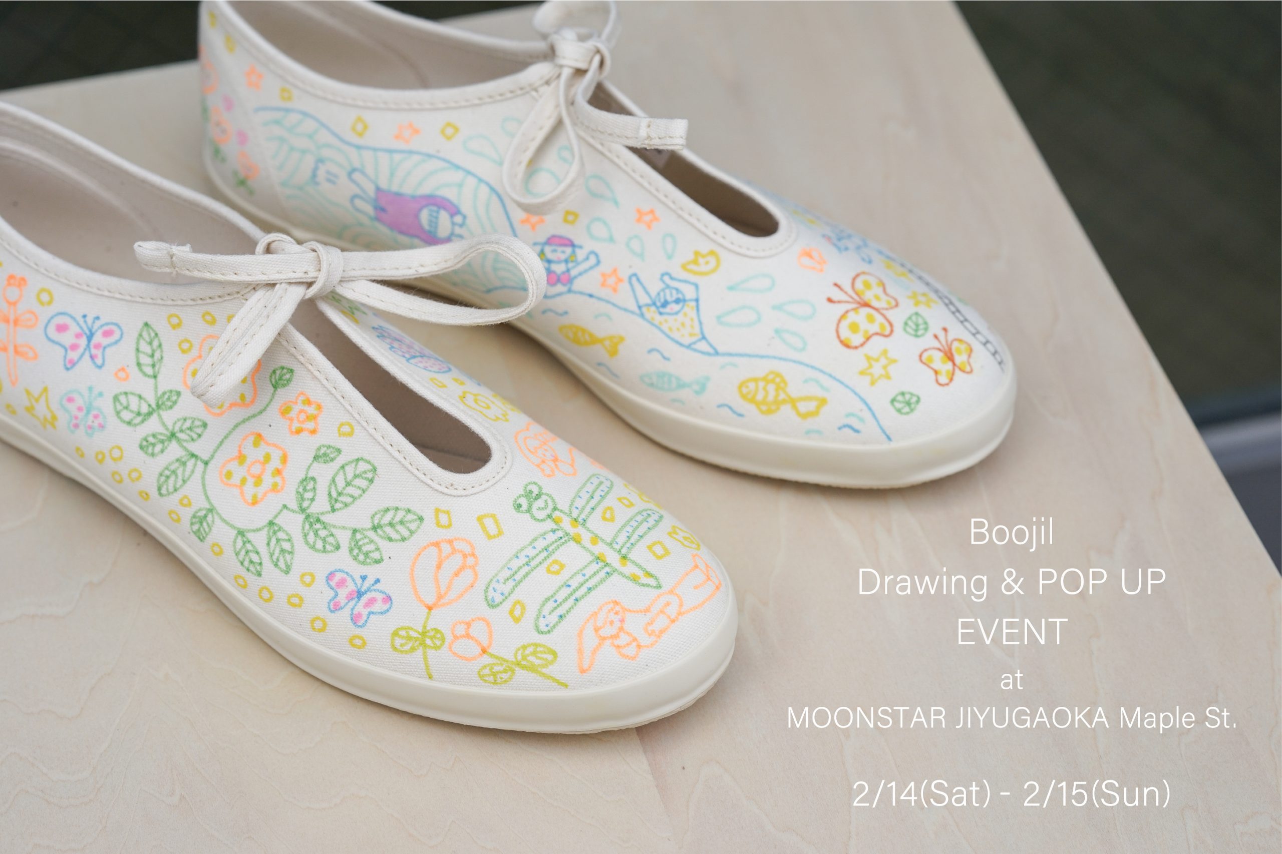 MOONSTARのスニーカーや上履きにイラストを描く“ドローイング オーダー会”を開催。Boojiさん(http://www.boojil.com/profile.html)の素敵なイラストを施した自分だけのオンリーワンシューズを作りませんか?